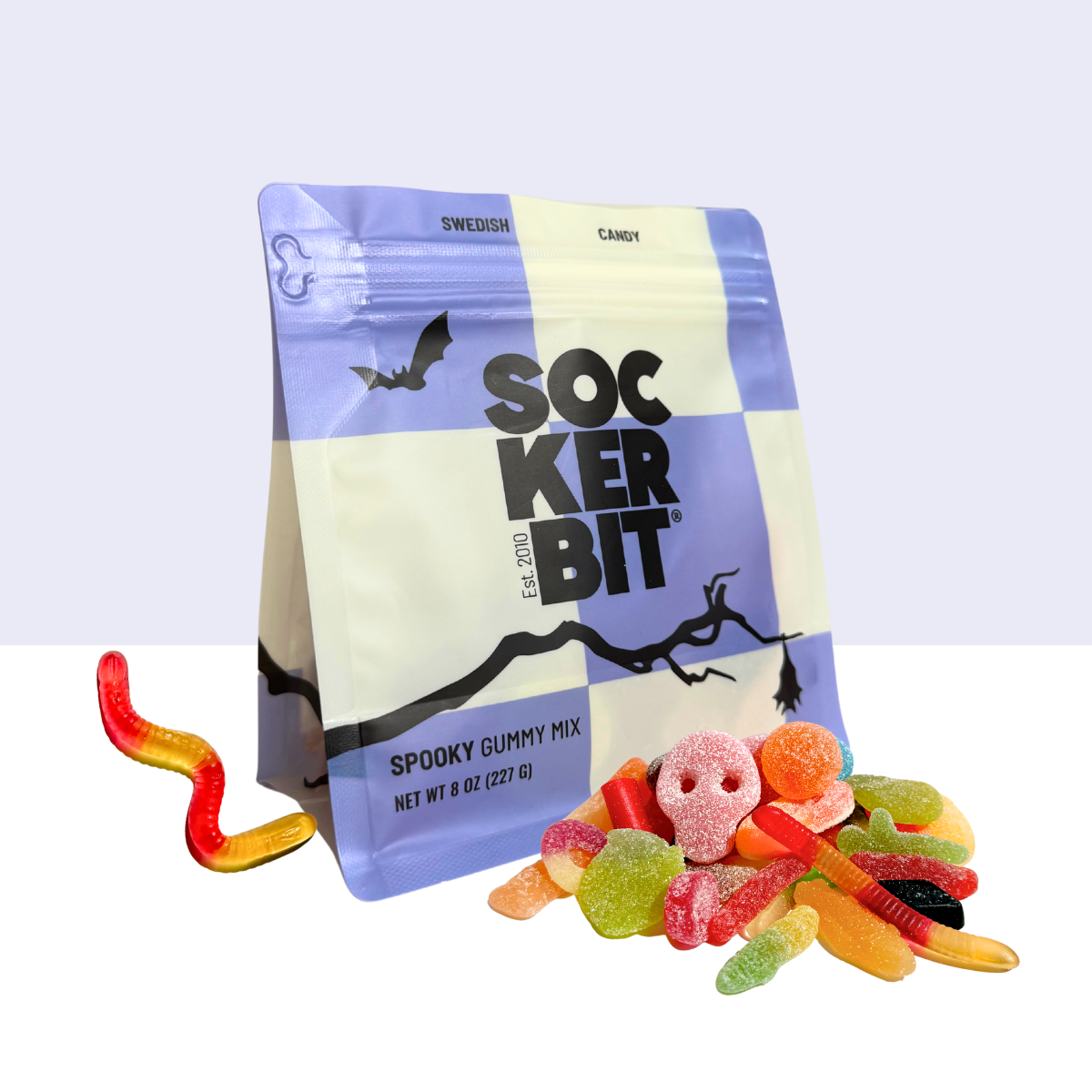 Get into the Halloween spirit with our Spooky Mix Candy Pouch! This resealable bag is filled with a frightfully fun assortment of sweet and sour gummies, in fun shapes like skulls, worms, and fish. Perfect for trick-or-treat bowls, party favors, or sneaking a bite between haunted happenings. (Hint: It’s also great for your candy stash, desk drawer, or scary movie night!) Snag a bag and treat yourself to a taste of Halloween magic! Made without high fructose corn syrup, red 40, trans fats, and GMOs.