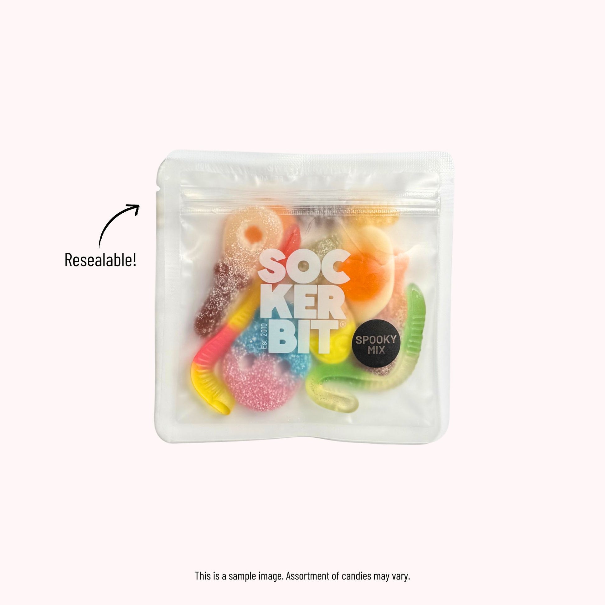Spooky Mix party favor candy bag. An excellent choice for a delightful treat that is free of high fructose corn syrup, trans fats, and GMOs. Ideal for Halloween party favors, event goodie bags, special occasions, and more.