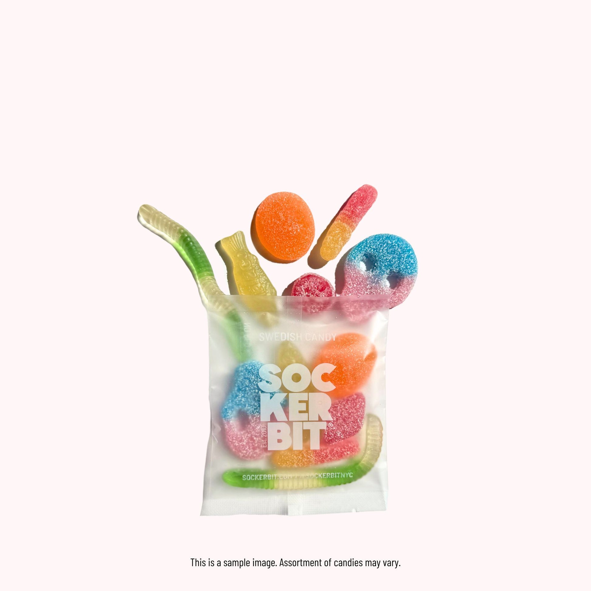 Each single serving packet contains sweet and sour candy mix, individually packed and sealed in our single serving bags.